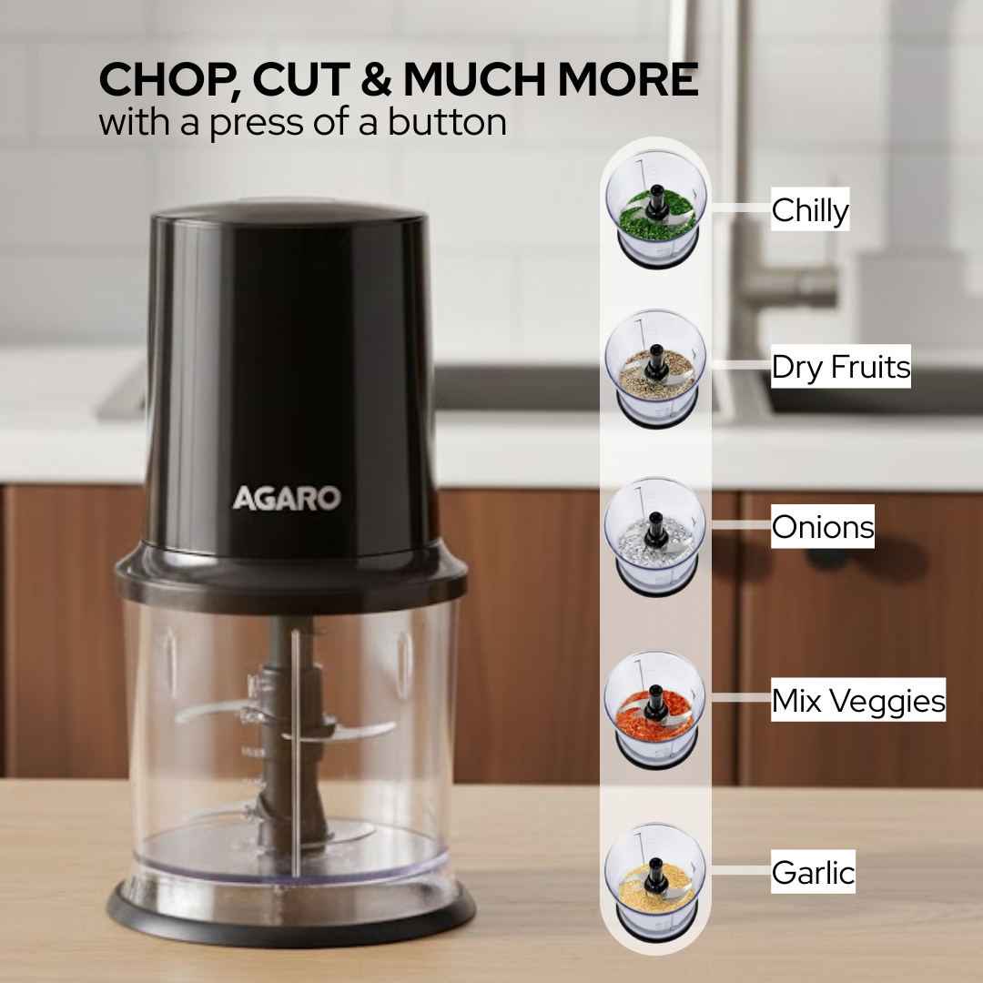 AGARO इलेक्ट्रिक चॉपर, दो स्टेनलेस स्टील ब्लेड के साथ | 500 मिली | 400W