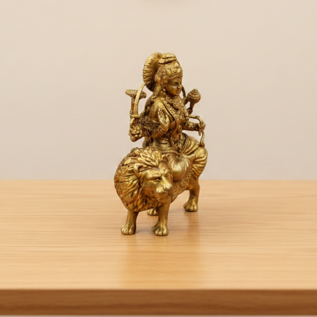 - दुर्गा माता की पीतल की मूर्ति, 80 ग्राम, प्रीमियम पीतल से निर्मित।