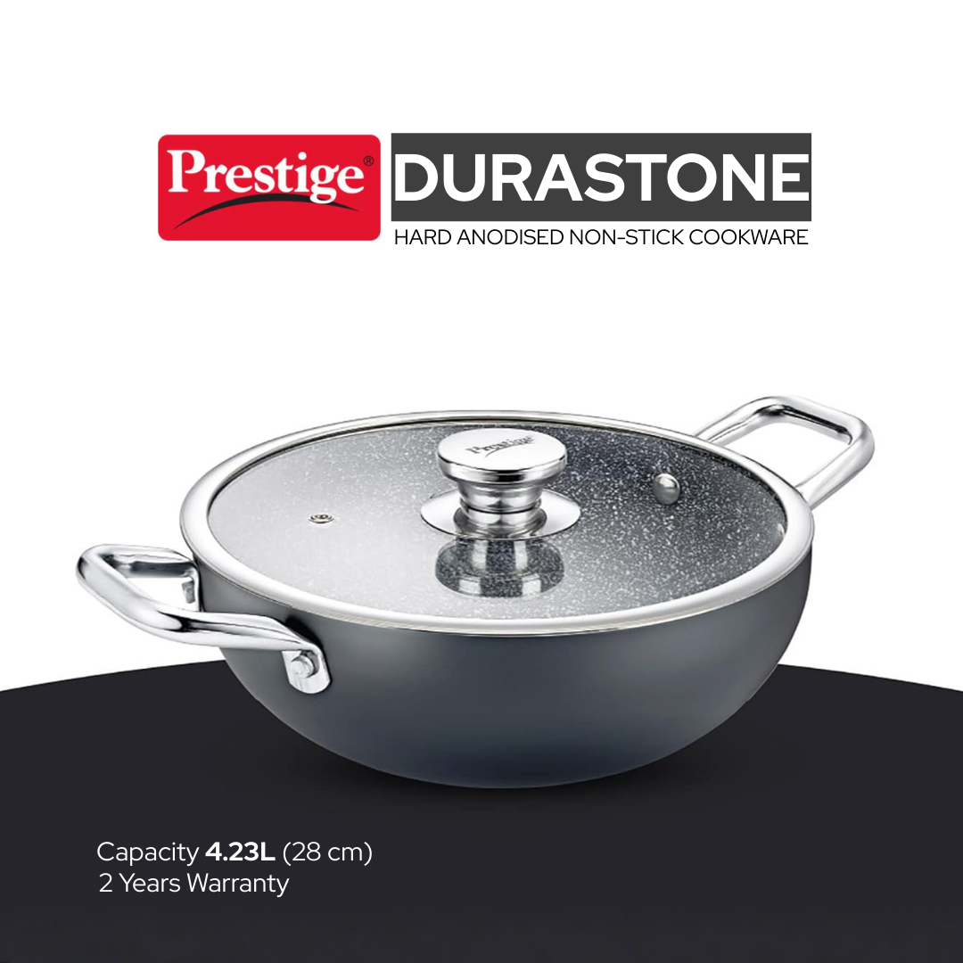 ड्यूरास्टोन नॉन-स्टिक कढ़ाई | कांच के ढक्कन के साथ, 28 सेमी | गैस और इंडक्शन पर उपयोग | 4.23 लीटर